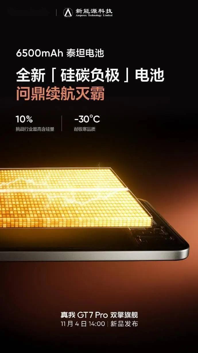 以真我 GT 7 Pro 为例,其搭载的 6500mAh 泰坦电池采用新一代硅碳负极技术,官方宣称将硅含量提升到 10%,能量密度相比普通石墨提升 7%,才能在实现更高容量的同时维持了电池体积的合理性。而在今年年初,小米 14 Ultra 采用的最新一代硅碳负极,最高硅含量刚刚才突破到 6%。