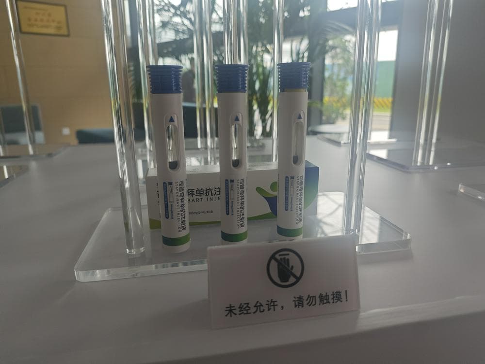 在康诺亚园区中,相关负责人向财联社记者展示了康悦达注射笔的模型,并表示,康悦达注射笔规格正在申报中,中重度特应性皮炎患者需要通过长期管理控制病情,注射笔规格便于患者保存于冰箱,需要用药时取出来放至室温即可自行注射,不用每一次都跑医院开处方、请护士注射,能极大提高患者依从性和便捷性。