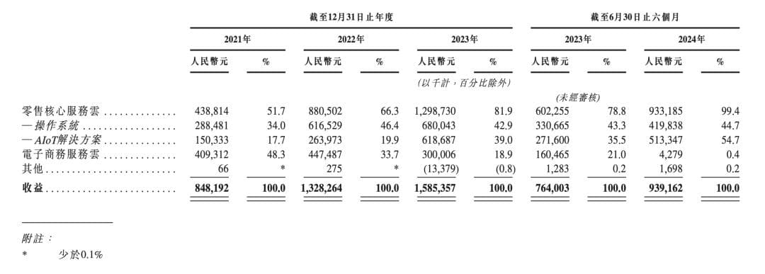 招股书显示,报告期内,多点的零售核心服务云解决方案的收益分别约为4.39亿、8.81亿、12.99亿、9.33亿元,占同年/期收益的51.7%、66.3%、81.9%、99.4%。