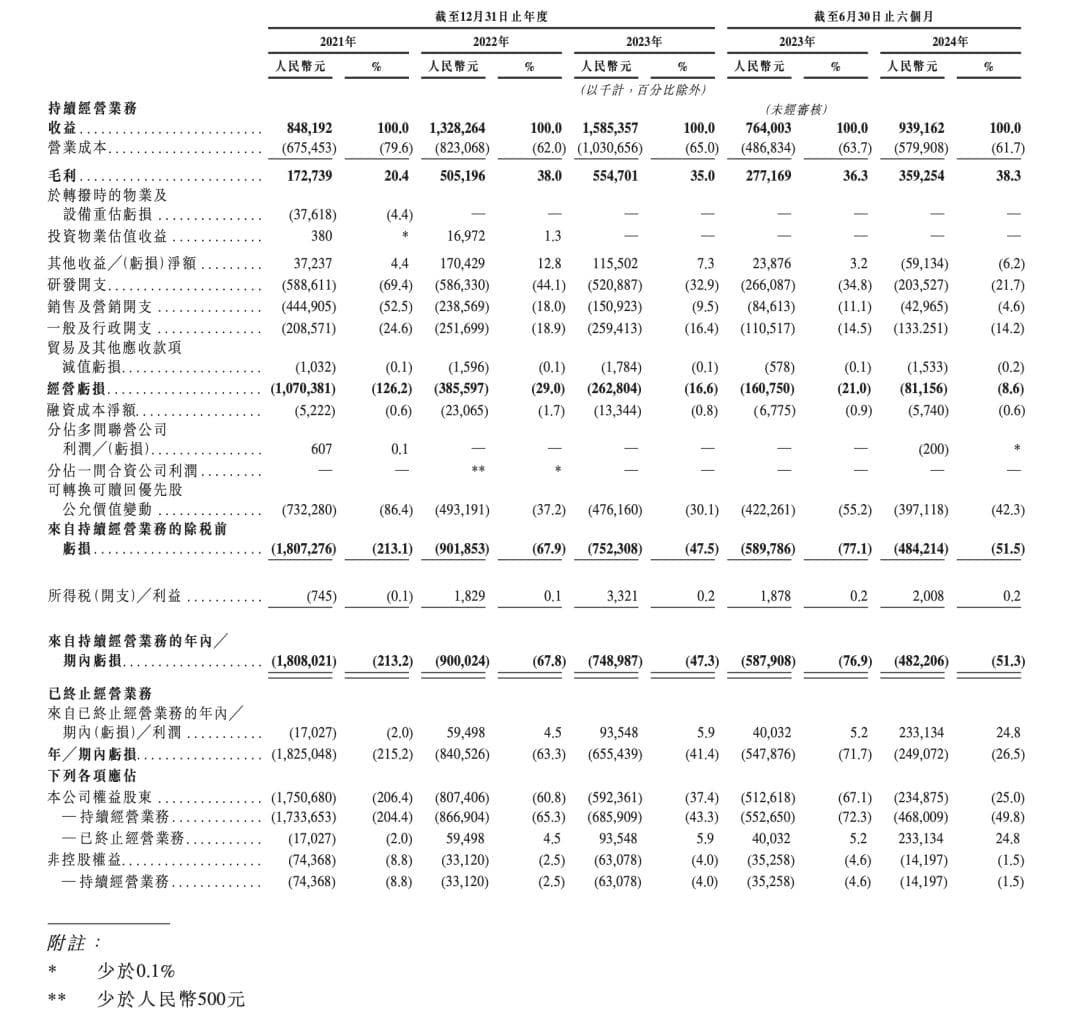 报告期内,多点的持续经营业务收益分别约为8.48亿、13.28亿、15.85亿、9.39亿元;毛利分别约为1.73亿、5.05亿、5.55亿、3.59亿元,毛利率分别为20.4%、38.0%、35.0%、38.3%;年/期内亏损分别约为18.25亿、8.41亿、6.55亿、2.49亿元。