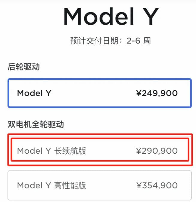 图/特斯拉Model Y长续航版价格下降至29.09万元 来源/互联网 新能源观截图