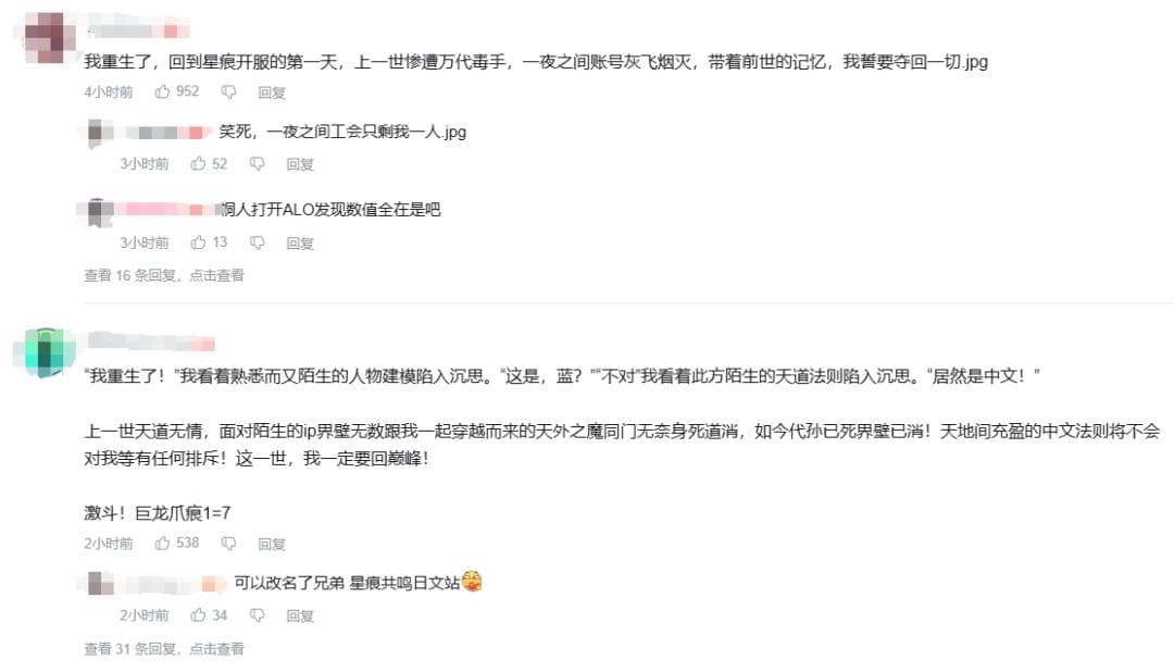 在这当中我们能够发现不少老玩家发的“转世爽文”模板小作文,一边表达着对《星痕共鸣》的期待,另一方面也是对万代的不满与调侃。
