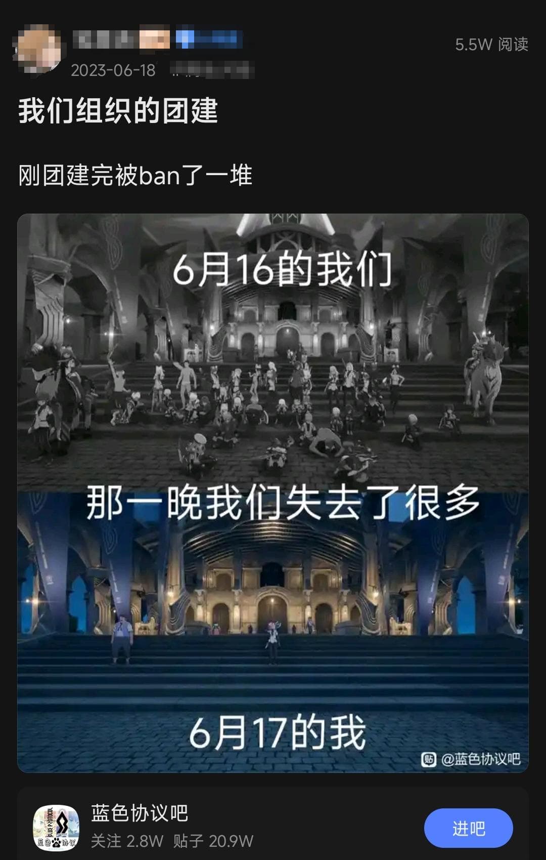 在《蓝色协议》的相关论坛内,也是流传着一张前一天几十个同伴还在游戏里一起团建,第二天竟只剩我独自一人的梗图,这足见万代的锁号力度有多大了。