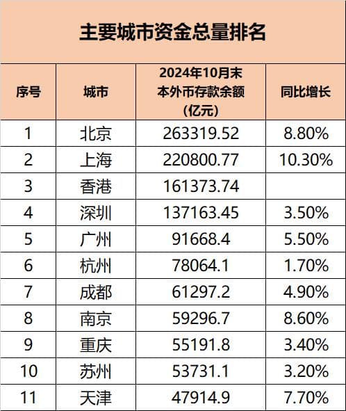 近日,多个城市公布10月末的资金总量 (本外币存款), 从中可以看到各大城市对热钱的吸附能力,以及楼市的体感。