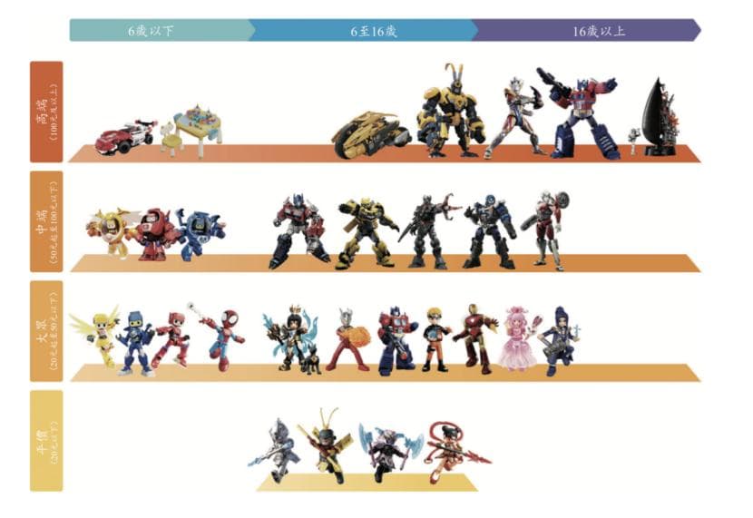 当然,产品的背后则是IP矩阵——截至目前,布鲁可已成功推出2个自有IP,包括儿童益智类的百变布鲁可和中国传统文化主题的英雄无限。同时,布鲁可还已获得超过30个知名IP的授权,包括奥特曼、变形金刚、火影忍者、漫威无限传奇、漫威小蜘蛛和他的神奇小伙伴们、小黄人、宝可梦、假面骑士、名侦探柯南、初音未来、圣斗士星矢、新世纪福音战士、凯蒂猫和芝麻街等。