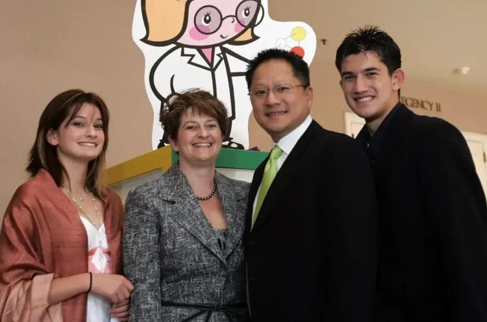 2007年,黄仁勋与妻子洛丽及他们孩子的合影
