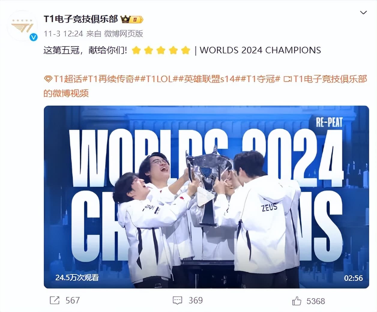 因此,Faker在LPL最需要回血的时候,直接送上“神补刀”——在今年全球总决赛的决赛上,Faker率领T1以3:2的比分击败了“全华班”阵容的BLG。