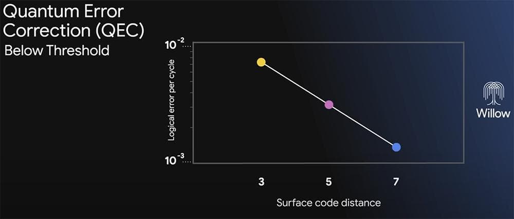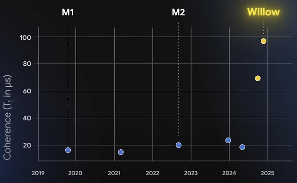 如图所示,Willow的最新结果是谷歌迄今为止最好的。
