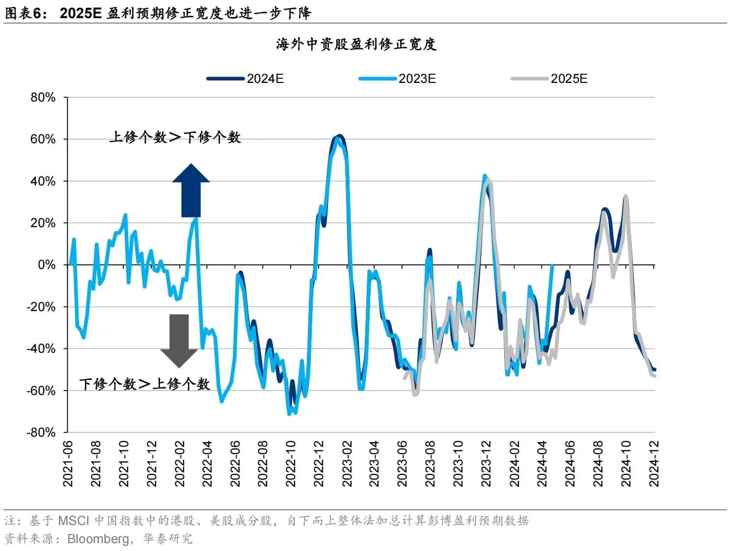 华泰证券认为港股或仍呈现震荡格局,考虑:11月以来海外中资股2025E盈利预期出现下修迹象,扭转了今年8-10月的上行趋势,目前超70%的个股近一个月有所下修、盈利预期较9月以来最高点下修约2%,其中互联网板块自最高点下修约4.7%。