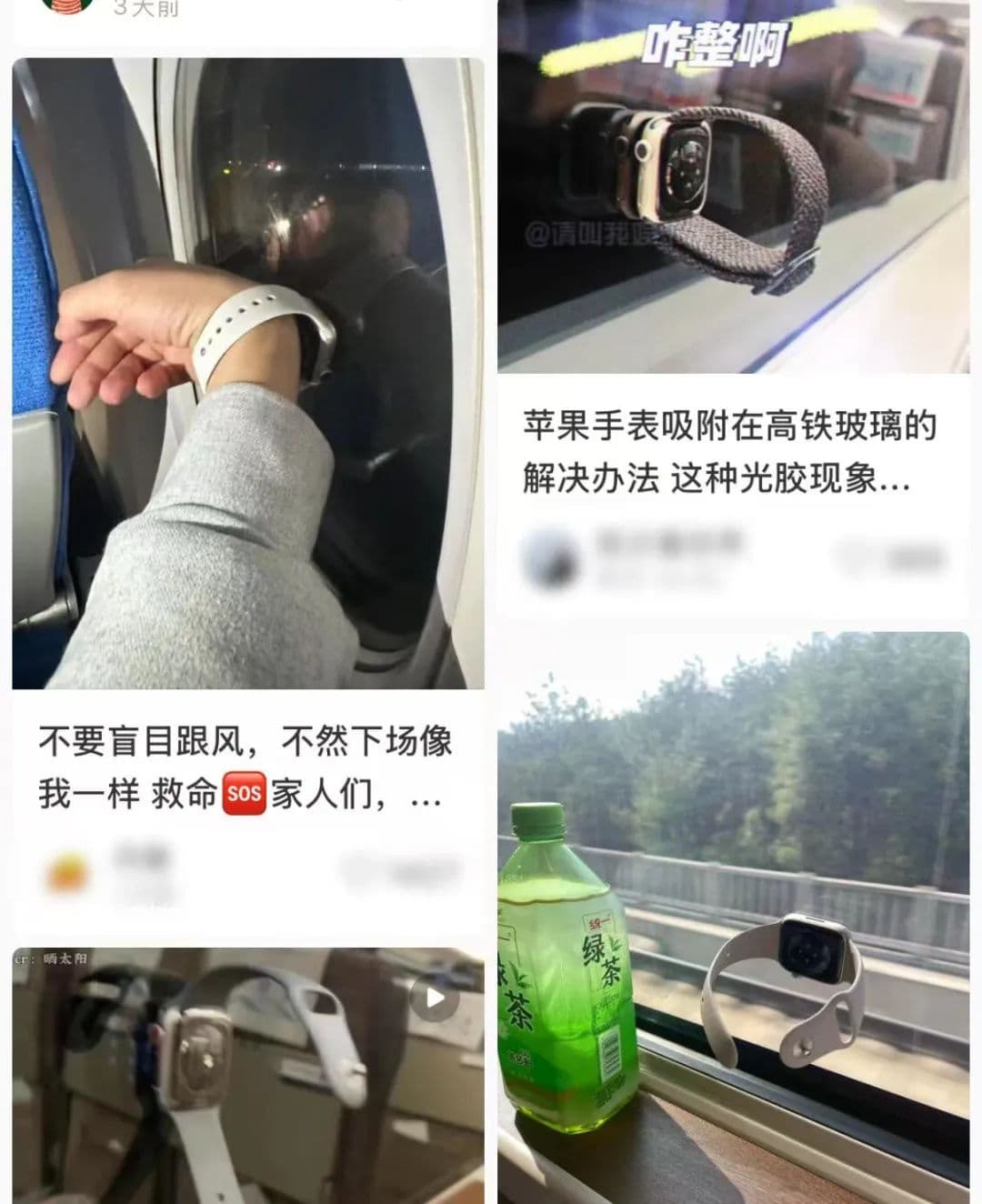近日,在社交平台上有网友发帖求助称,把苹果手表表盘吸在了高铁的窗户上,结果吸住了拿不下来。随后有部分网友也开始尝试,把苹果手表表盘吸在光滑的玻璃上,有的可以吸附成功,有的则失败。还有网友称吸附成功后取不下来,使劲拽结果把表盘整个拽下来了。
