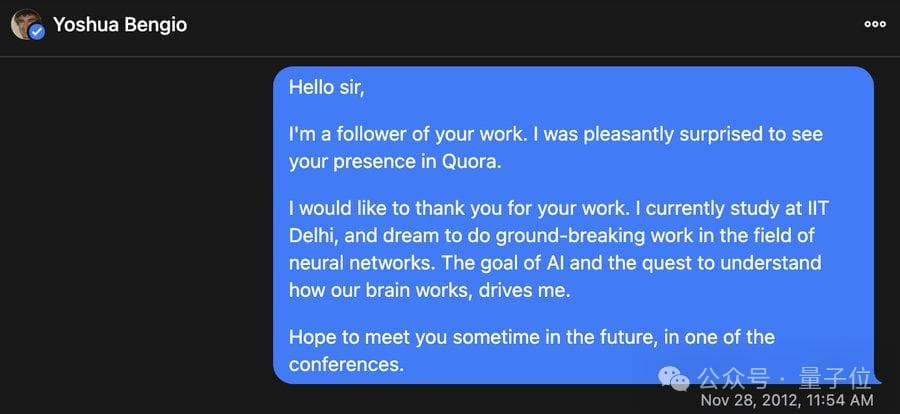 “我”真诚地感谢他帮助像“我”这样的本科生理解深度学习。“我”通过Quora联系他,表达谢意。