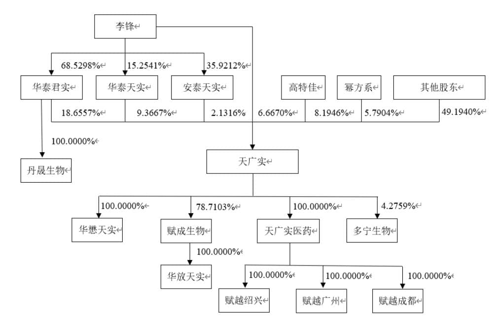 从股权结构来看,李锋直接持有天广实约6.67%的股份,通过间接的方式合计控制公司约36.82%股份表决权,为公司实际控制人。