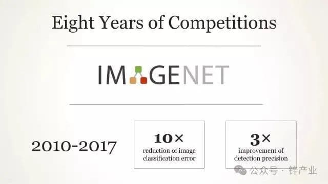 2010年,斯坦福大学李飞飞教授基于ImageNet数据集,在全球发起了ImageNet挑战赛,在这一为期八年的针对视觉识别的AI挑战赛中,人工智能算法识别物体的准确率从71.8%提升到了97.3%。