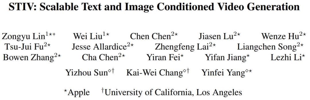 OpenAI 的 Sora 公布了一天之后,在一篇由多位作者署名的论文《STIV: Scalable Text and Image Conditioned Video Generation》中,苹果正式公布自家的多模态大模型研究成果 —— 这是一个具有高达 8.7B 参数的支持文本、图像条件的视频生成模型。
