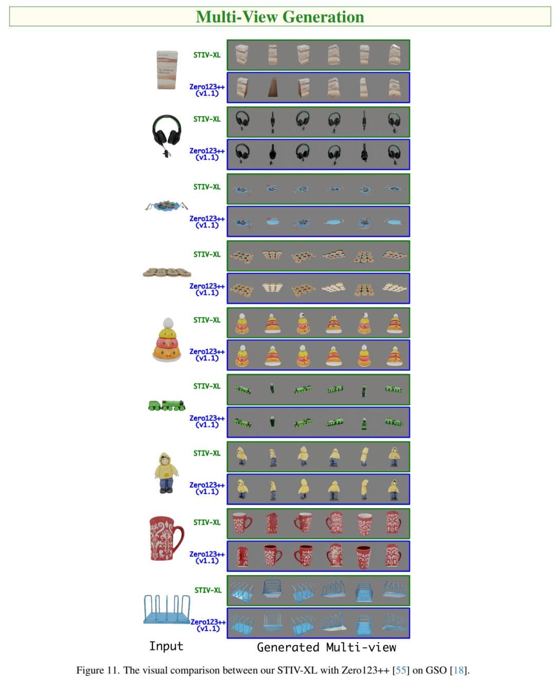 多视角生成旨在从给定的输入图像创建新视角。这项任务对视角一致性要求较高,依赖于良好预训练的视频生成模型。通过将视频生成模型适配为多视角生成,我们可以验证预训练是否有效捕获了 3D 信息,从而提升生成效果。