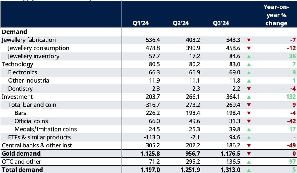 其次需求端,三季度相比二季度,工业黄金的需求总体稳定,而央行购金力度则在继续放缓。