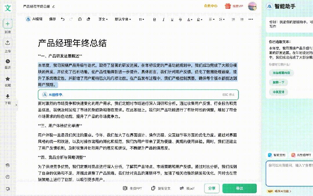 今年以来,百度文库可以说发生了翻天覆地的变化,先后推出智能文档生成、PPT 制作和教育内容创作等功能,整合百度网盘,让内容创作的门槛降至最低。百度文库的 AI 化可以说是内容创作的一次「工业革命」,让学生、职场人和创作者都从 AI 化中获益。
