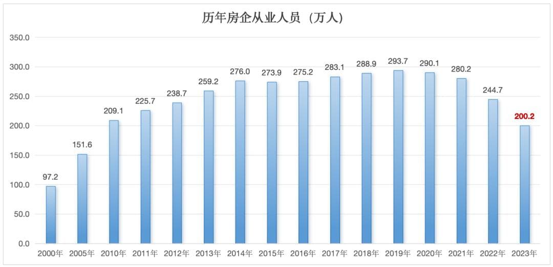 最近偶然看见这样一份数据,是关于历年地产从业人员的人数。