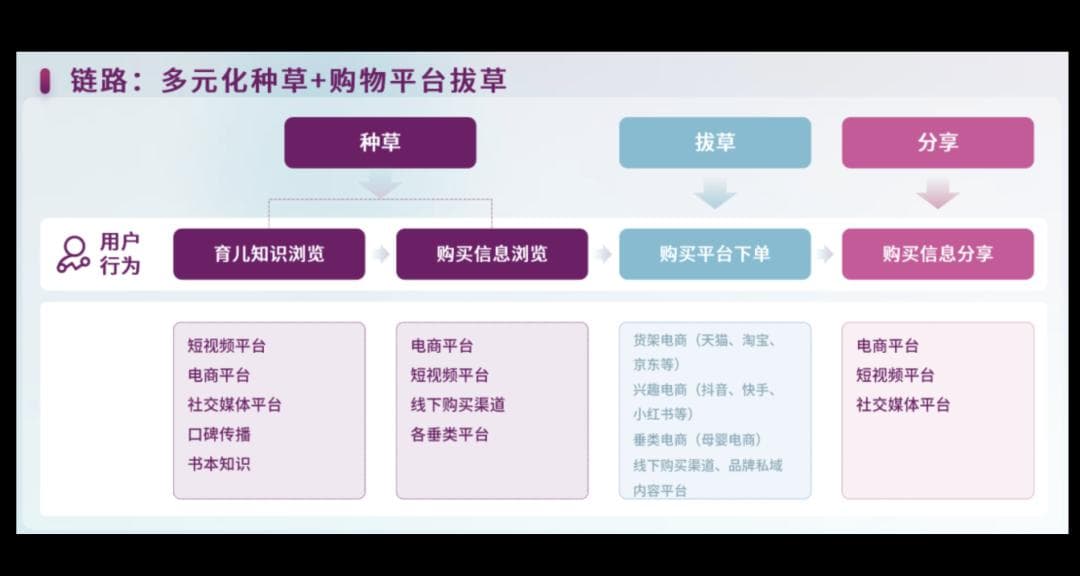 上图就是飞鹤从种草到拔草,再到分享的全过程,这个没啥好说的。关键点在于对KOL和KOC的使用,这是品类特点决定的。