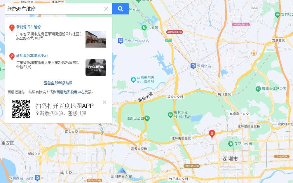 我国现存汽车维修相关企业有几十万家,但其中能为新能源汽车提供的维修服务的企业,还不到2万家,并且有相当一部分不能修最关键的三电部分。哪怕是深圳这样的一线大都市,绿牌车遍地跑,也只能搜到59家新能源车修理店,如果你只是搜“汽车维修”,则会弹出数千个结果。而且燃油车的各种零部件,总能找到廉价的副厂件,只要测绘、仿制就行,谁都找个厂子可以生产,但你见过有谁卖副厂的电池包或者电芯吗?光是建造产线就需要数以亿计的资金,根本不是小厂能掺和的生意。