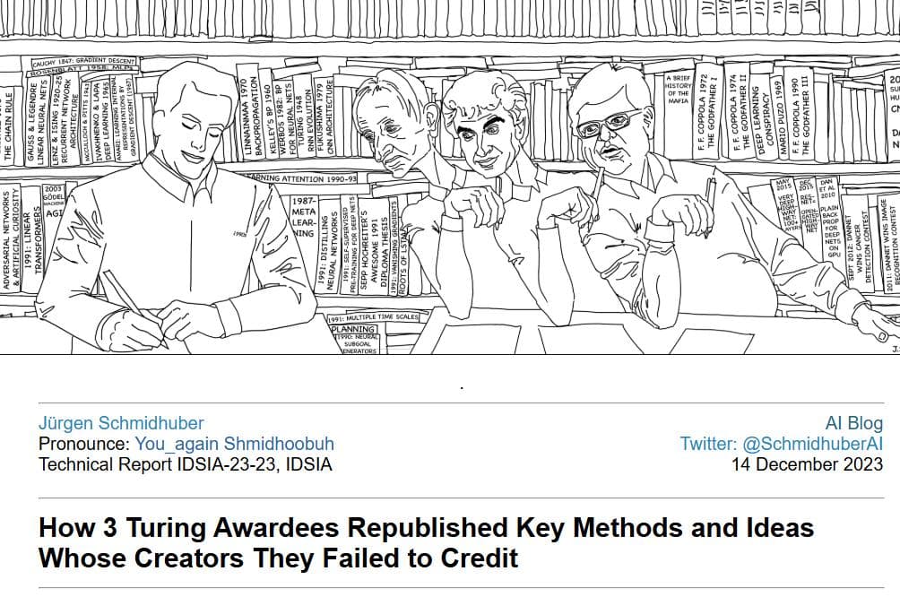 2023年12月,Jürgen就曾发布过一篇报告,控诉三位图灵奖得主Bengio, Hinton和LeCun各有相关工作参考于他之前的工作,但并没有标注引用,「抄袭」罪状中,Bengio七条、Hinton六条、LeCun四条。
