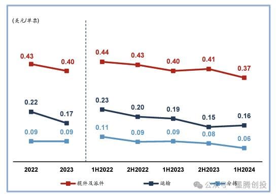 至于大家赚不赚钱这个事,极兔的财报中也有一些线索。财报显示,自2022年以来东南亚极兔速递业务的每单营收最近几年一直下行 - 从2022年上半年的每单0.97美金跌到了2024年上半年的0.74美金。不过,极兔的数据显示每单成本也在逐渐下行,保持了一个单元经济相对稳定的状态。