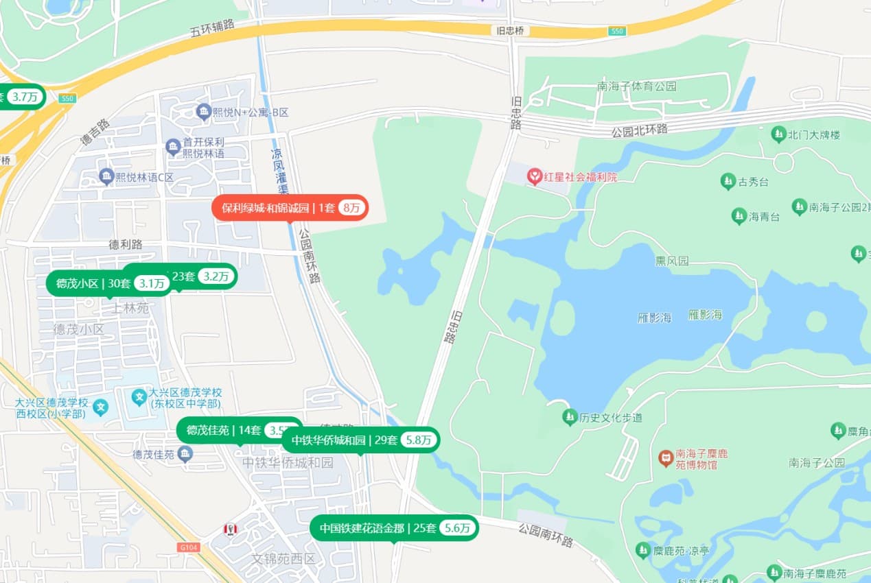 位于东南五环外,南海子公园旁,同样是公园资产的和锦诚园,虽然没有双地铁的加持,目前二手房的挂牌价格也高达8万元/平米。