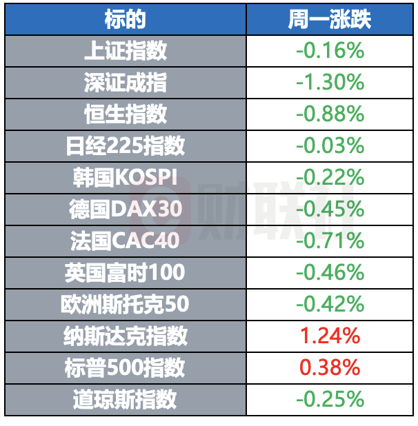 全球主要股指周一多数下跌,美股市场走势分化,纳指涨超1%,刷新历史新高,道指连续八个交易日下跌,创下2018年以来最长连续跌势。