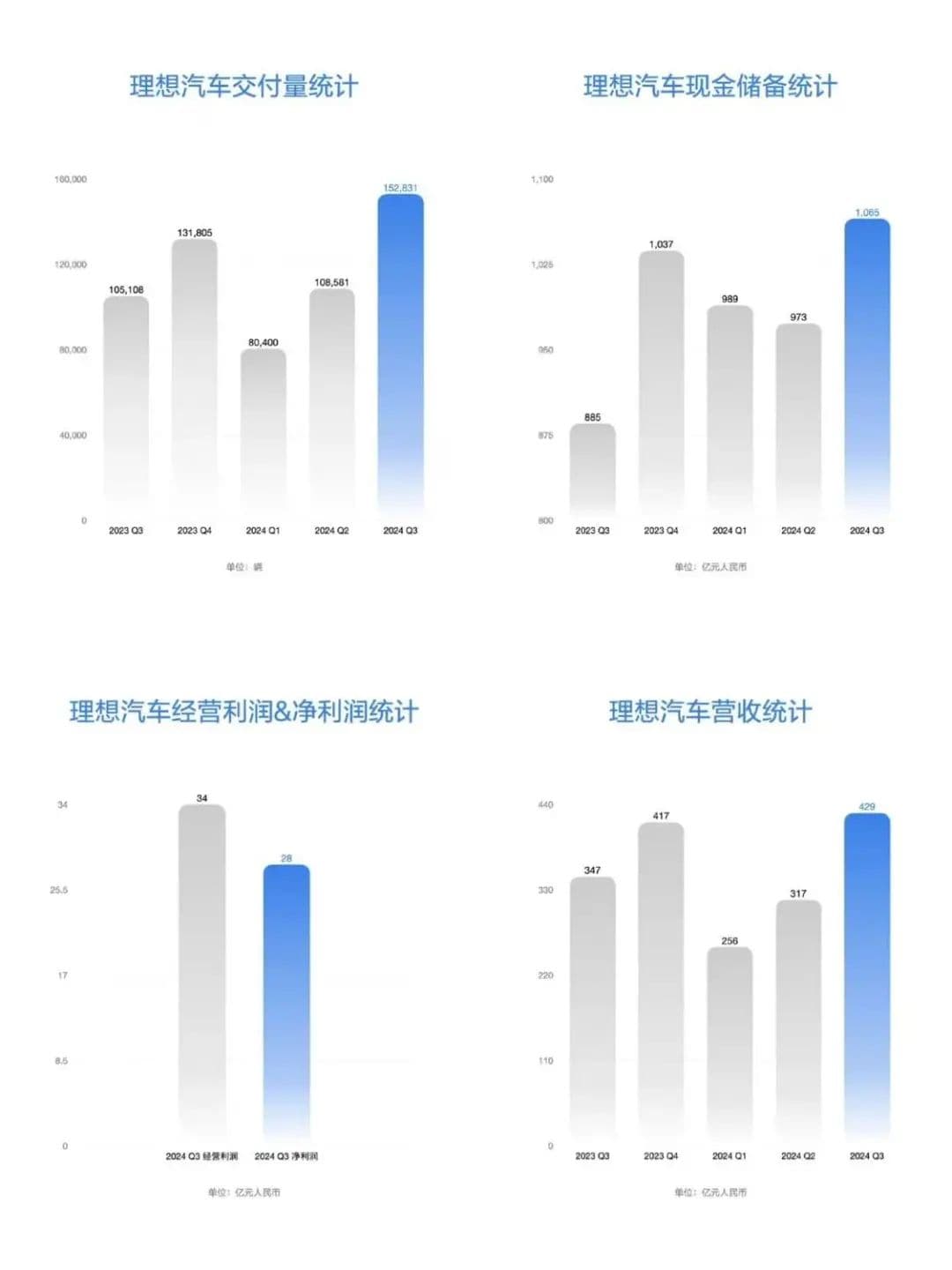 2024年第三季度,理想汽车以28.21亿元的净利润,成为五家中唯一实现盈利的整车企业。
