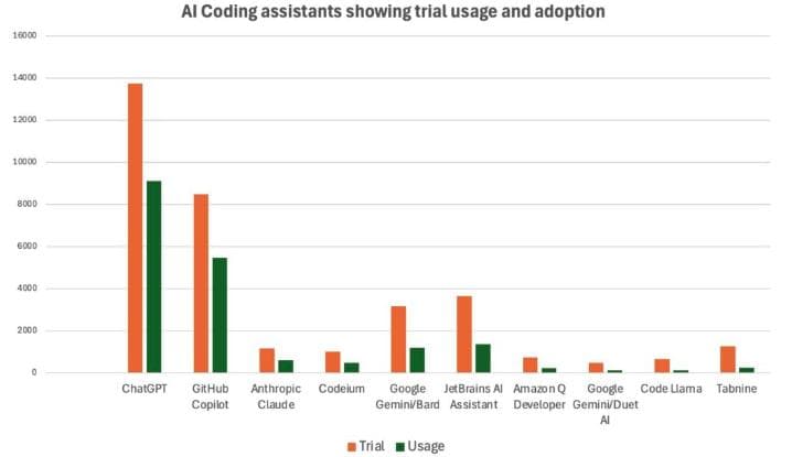 这些数字不仅反映出 AI 工具在编程领域的普及程度,也揭示了它们对提高生产力和简化复杂任务的重要作用。