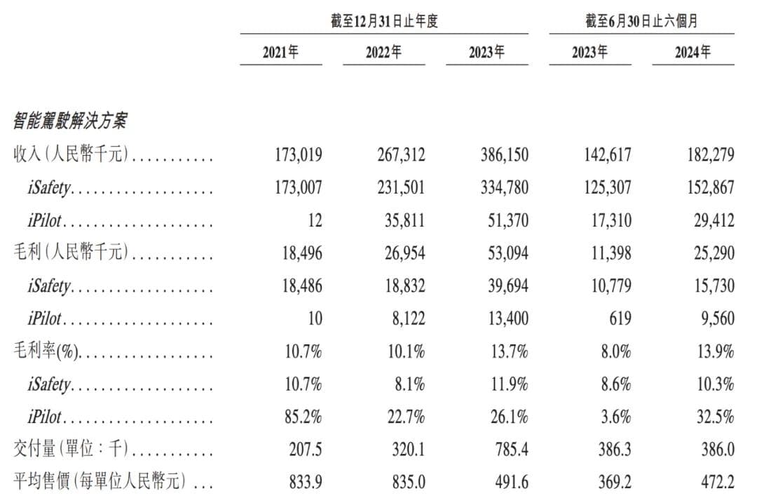 数据显示,2021、2022年、2023年和2024年上半年,佑驾创新营收分别是1.75亿元、2.79亿元、4.76亿元和2.37亿元。