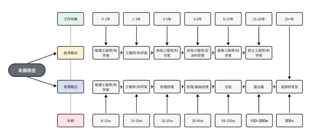 科学博主芒奇金曾在其知乎文章“关于化妆品研发岗的6大秘密”中指出,美妆行业的研发岗位职业发展一般分为技术和管理这两大路径,且都需要经历多个职业阶段的累积。