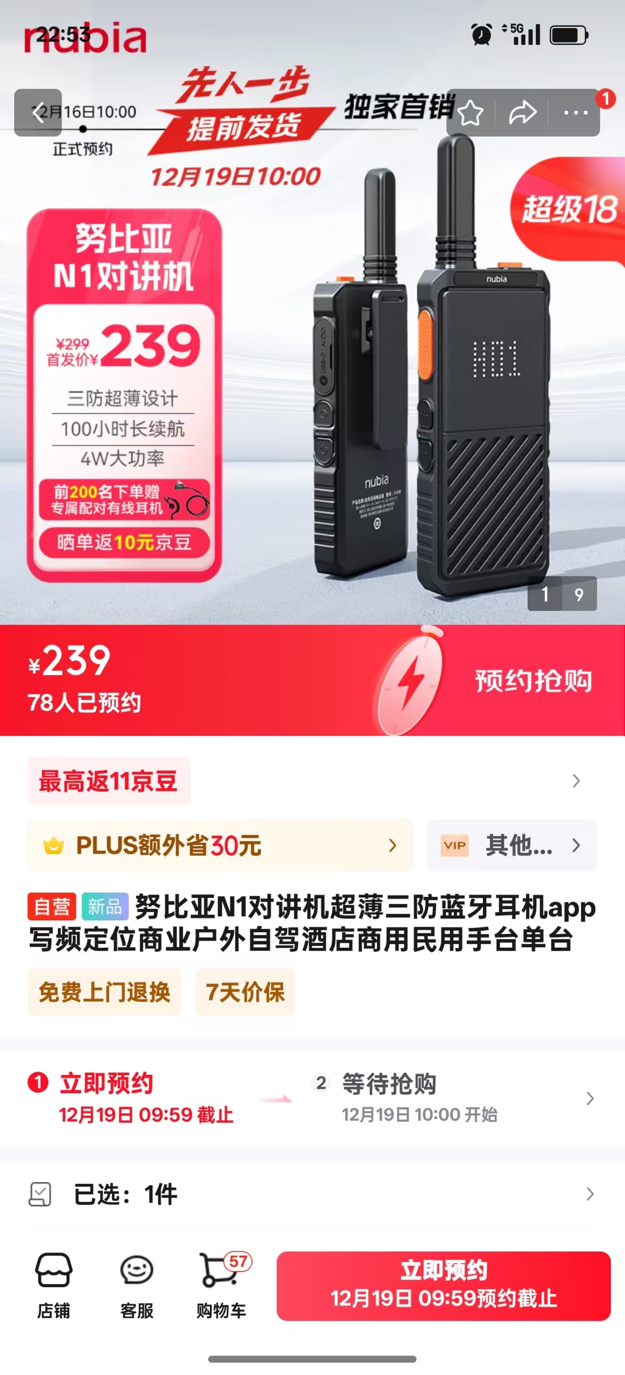 雷科技近期注意到,努比亚悄悄推出了一款对讲机:努比亚对讲机N1,目前只有京东自营一个渠道销售(处于预约阶段),首发售价为239元,官网没有找到对应的商品链接。