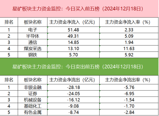 板块资金流出方面,非银金融板块主力资金净流出居首。