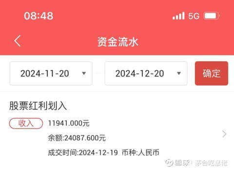 今天分红由特殊分红改为中期分红,虽然公告是3年,但按照我对茅台的理解大概率会长期维持下去,今天第一次记录到账的退休金,为以后做个参考。