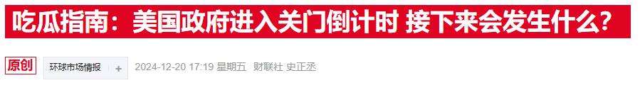 这一消息打击了市场的风险偏好。发稿前不久,美国当选总统特朗普表示,如果美国政府要停摆,那就让它现在开始,因为这是拜登政府要解决的问题。