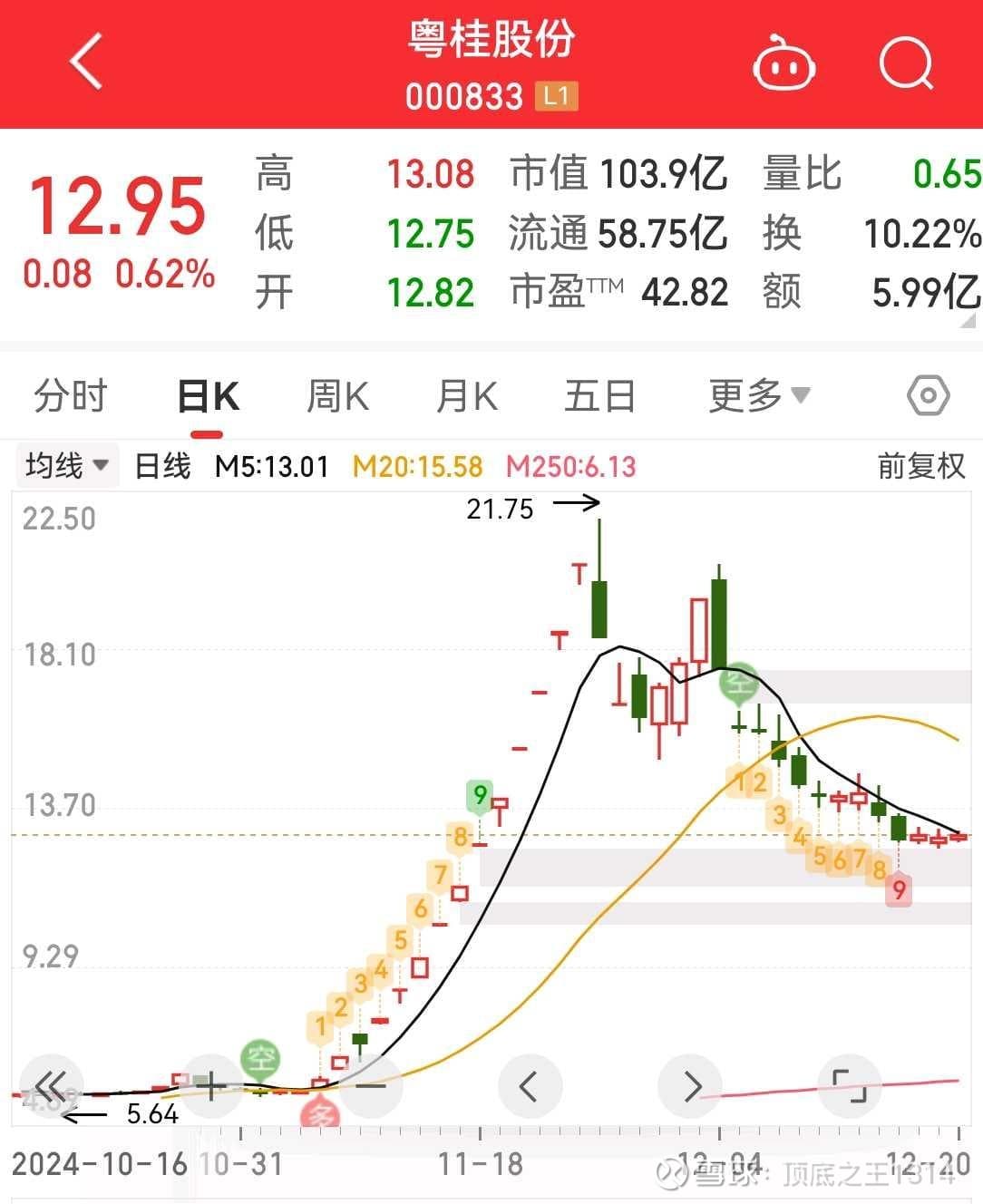后面作为强哥概念股的风浪越大鱼越贵——粤桂股份,也是一骑绝尘,一波接近4倍。