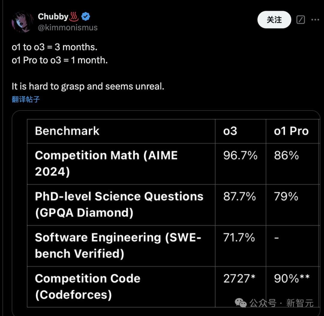 「从o1到o3要3个月。从o1 Pro到o3只要1个月。」