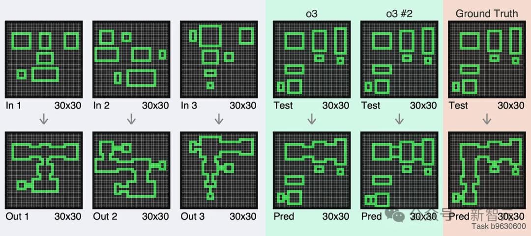 最后一个例子,在两次尝试中,o3的预测中漏掉了几行。看来,它很难记住有多少相同重复的行要输出。