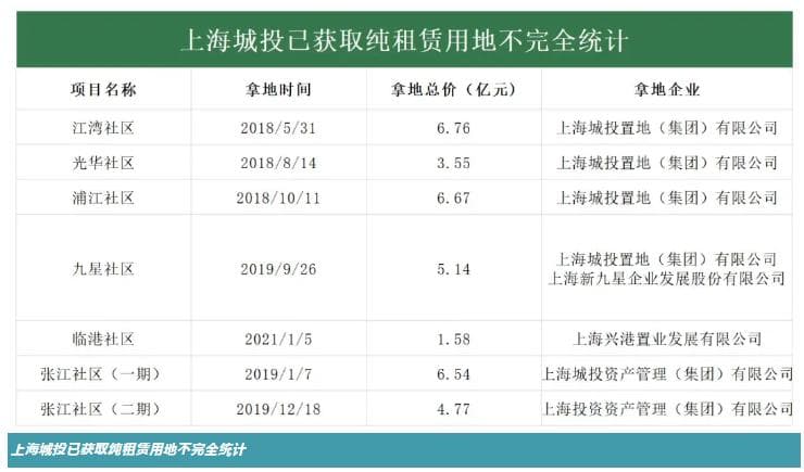 2018年—2021年期间,上海城投共计拿下7宗R4纯租赁用地(一种特定的土地利用类型,特点是“自持70年”和“只租不售”)、4块配建租赁用地和1块拿地自持租赁用地其中已有多个项目成功投入运营。