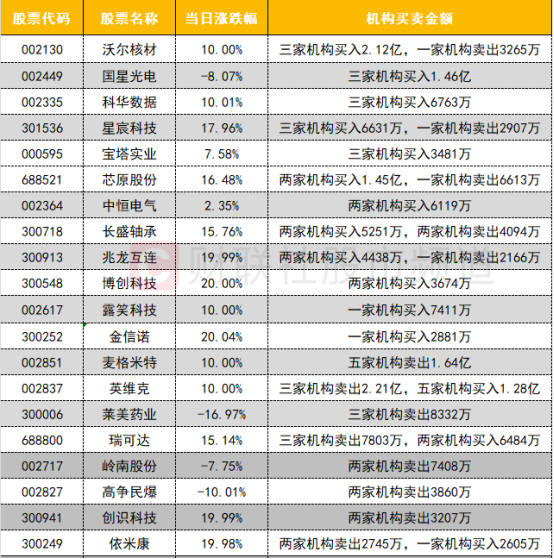 卖出方面,AI服务器电源概念股麦格米特遭机构卖出1.64亿;液冷服务器概念股英维克遭机构卖出2.21亿,同时获机构买入1.28亿;岭南股份遭机构卖出超7000万。
