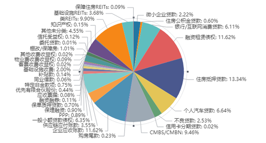 ABS产品体系纷繁复杂,底层资产可以分为34类,根据发起机构和监管部门的不同,又可分为信贷ABS、企业ABS、资产支持票据ABN和保险ABS,其中企业ABS是融资规模主力。