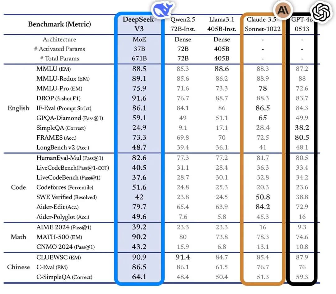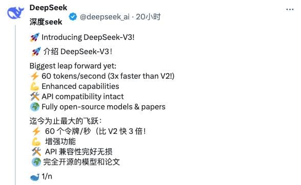 堪称 国货之光的 DeepSeek-V3 更是直接 炸出了一大堆海外专业 AI 人士的背书。