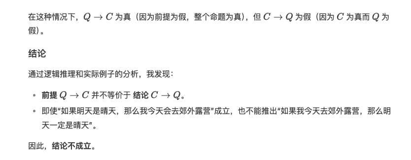 「如果明天是晴天,那么我今天会去郊外露营,如果我今天去郊外露营,那么明天一定是晴天吗?」