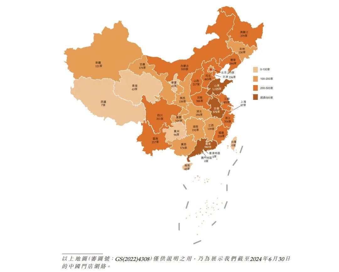 沪上阿姨多数门店其实不在沪上。从其门店网络比例来看,截至今年上半年,山东是其第一大省份市场,门店数达到1125家,其次是广东、安徽,门店数分别为942家、572家,而上海门店仅有87家。