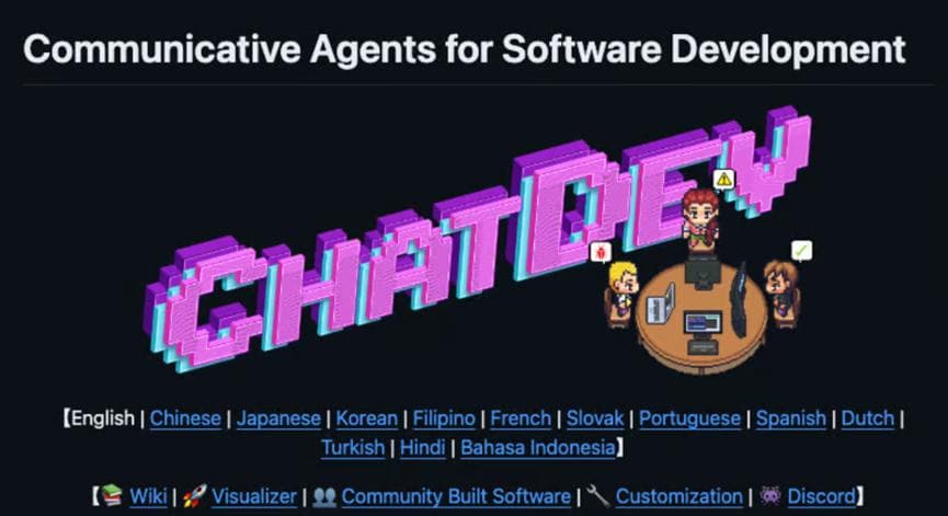 • 多代理协作:包含 CEO、CTO、开发者、测试员和设计师等角色的AI Agent团队,共同开发软件。