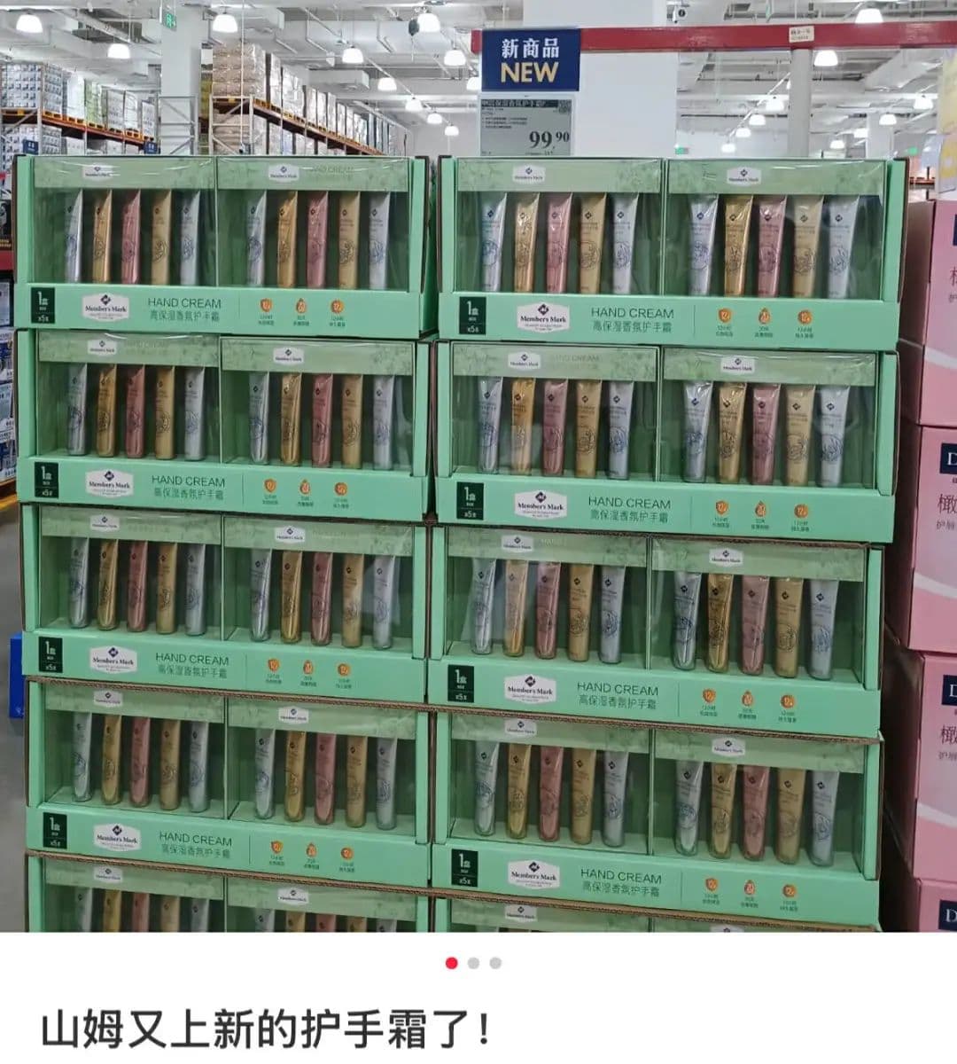 同样卖自家护手霜的还有中产商超山姆,75ml5支装售价为99.9元,单支也不到20元,强调高保湿功效。