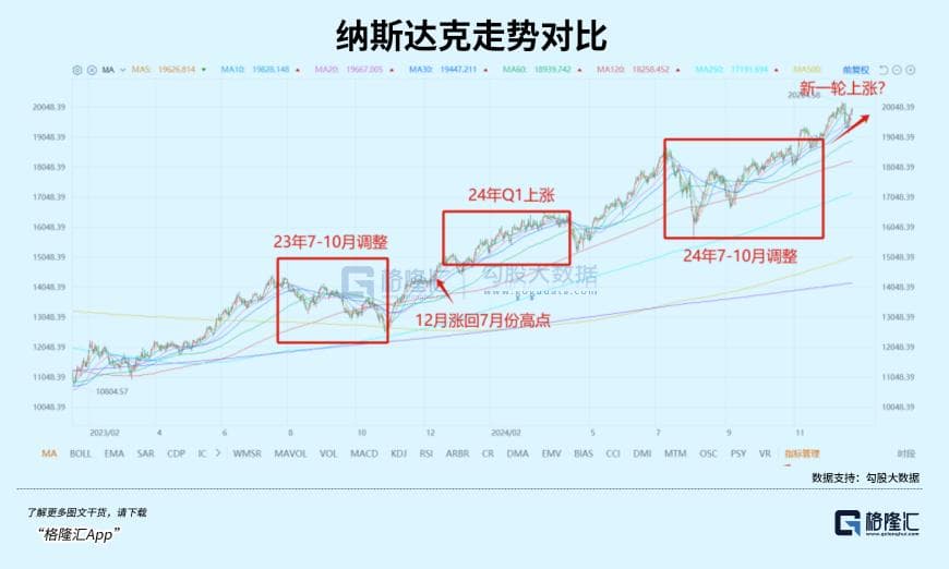 2023年是open AI的chatGPT推动,2024年则是英伟达强劲的业绩预期推动,当中还有美国宏观经济增长、货币宽松,以及数月盘整结束后重回上涨的驱动。