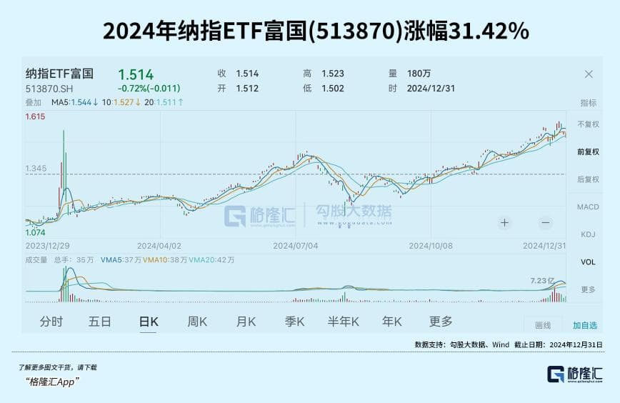 美股领涨,纳指ETF富国(513870)年内涨幅31.42%。