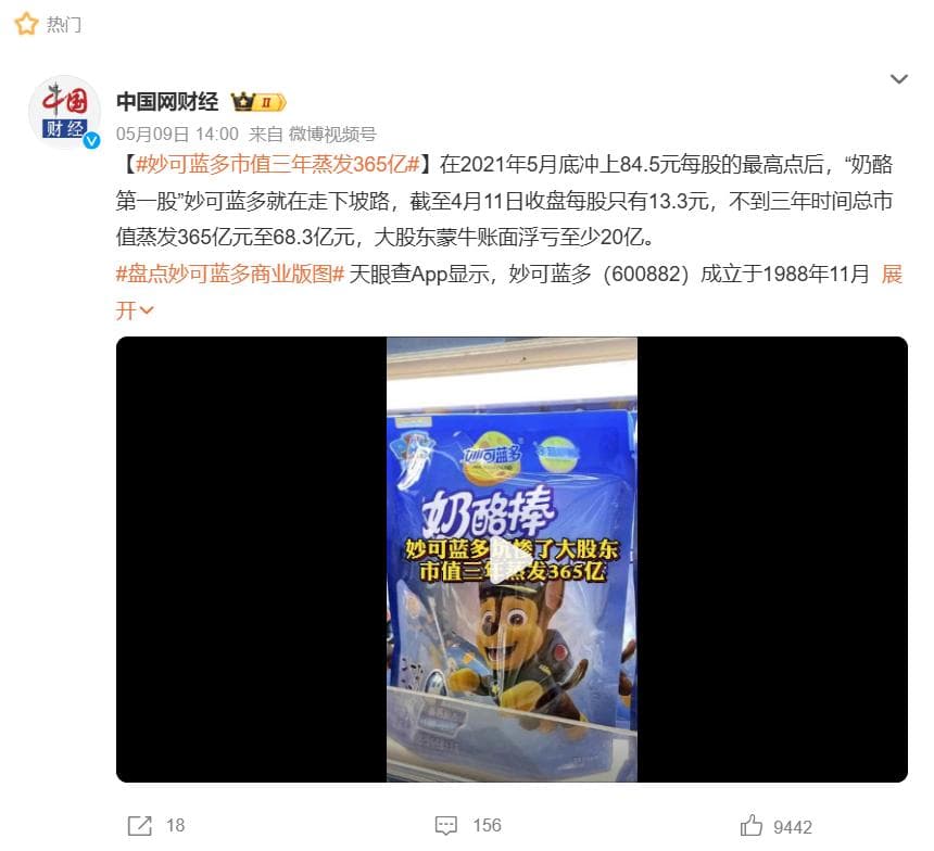 2024年5月,#妙可蓝多市值三年蒸发365亿#登上热搜。过去几年,妙可蓝多的广告投放量巨大,对品牌不可谓不重视。